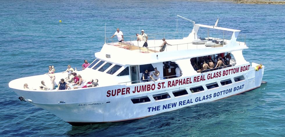 Odkryj podwodny świat Pafos dzięki łodzi Super Jumbo St. Raphael z przeszklonym dnem!